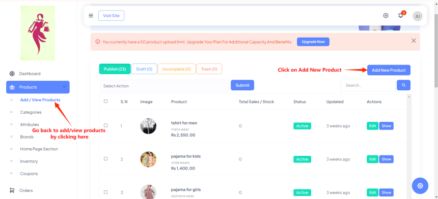Step 3: Now go back to add view/ products by clicking there. After that click on Add New Product.