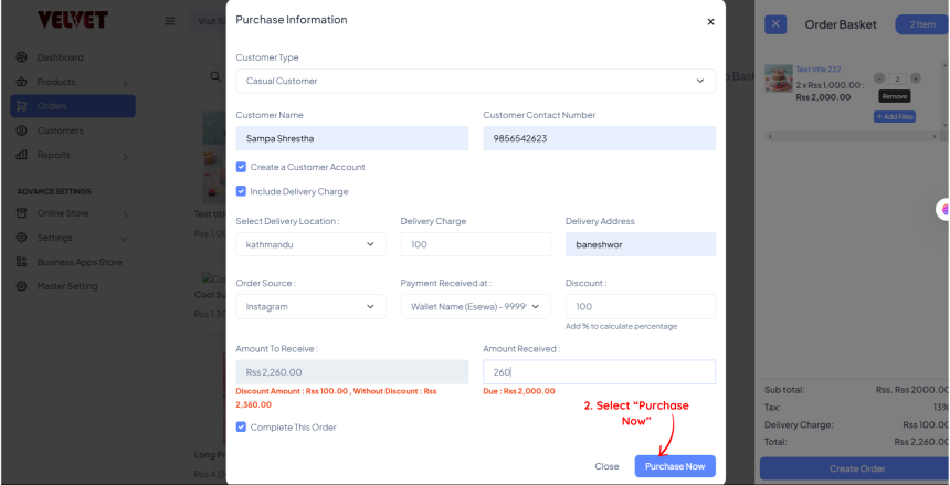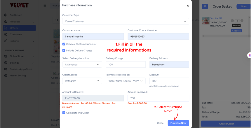 Brodox makes it easy to process in-person sales with its Point of Sale (POS) system. Follow these simple steps to create an offline order.