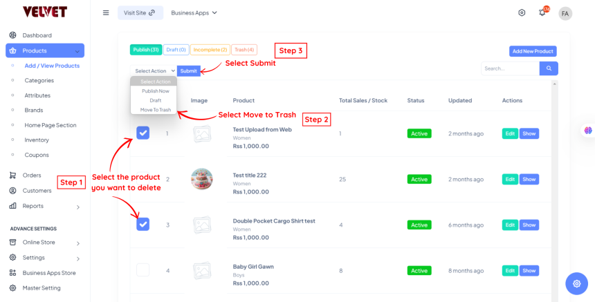 Managing your product inventory in Brodox is simple. If you need to remove/delete a product that is no longer available, follow these easy steps to delete it from your store.