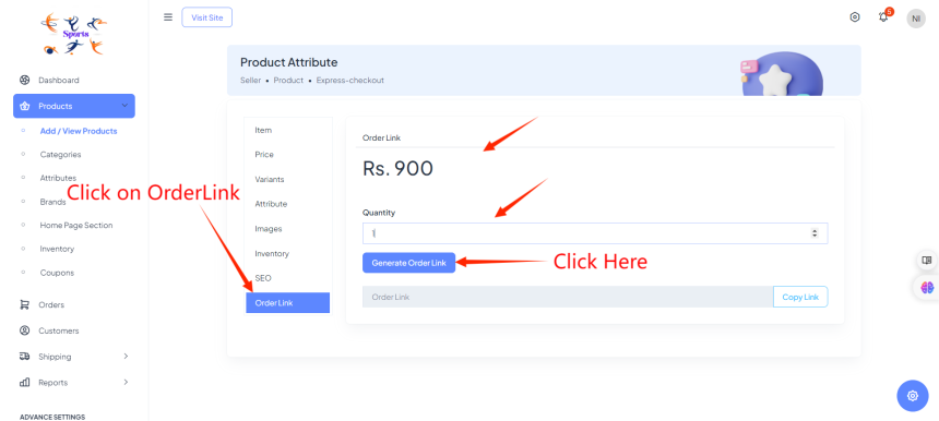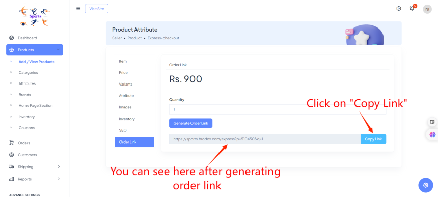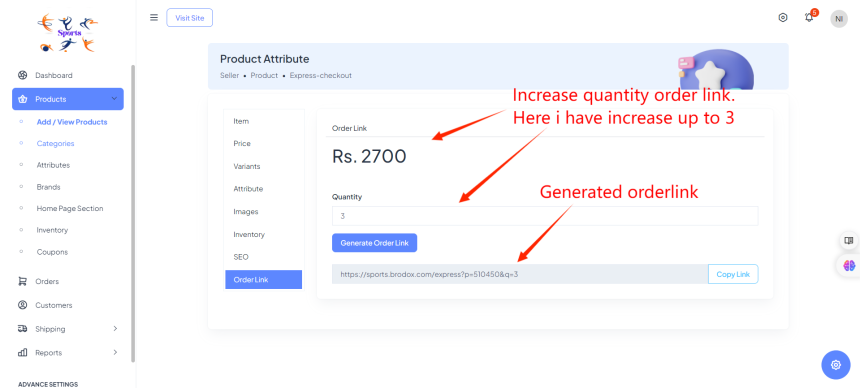 3.After setting the quantity, click on the "Generate Order Link" button.