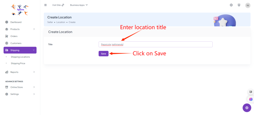 After adding shipping Locations. You have to create a Location title. for example, "Pepsicola, Kathmandu," and click Save.