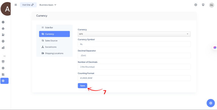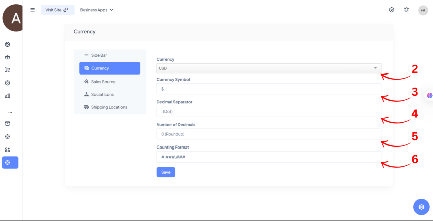 - Click on the Save button to apply your currency settings.
