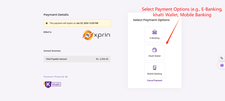 However if you want to do payment with Khalti. Select here.