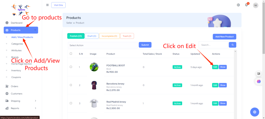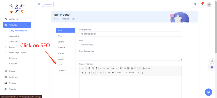 Go to Products and Click on Add/View Products. On the right side, click on the product you want to edit for product SEO.