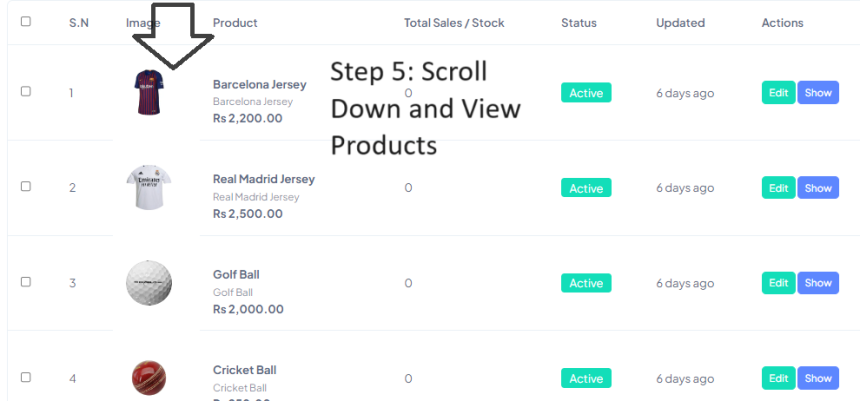 Step 5 : Scroll down and view Products